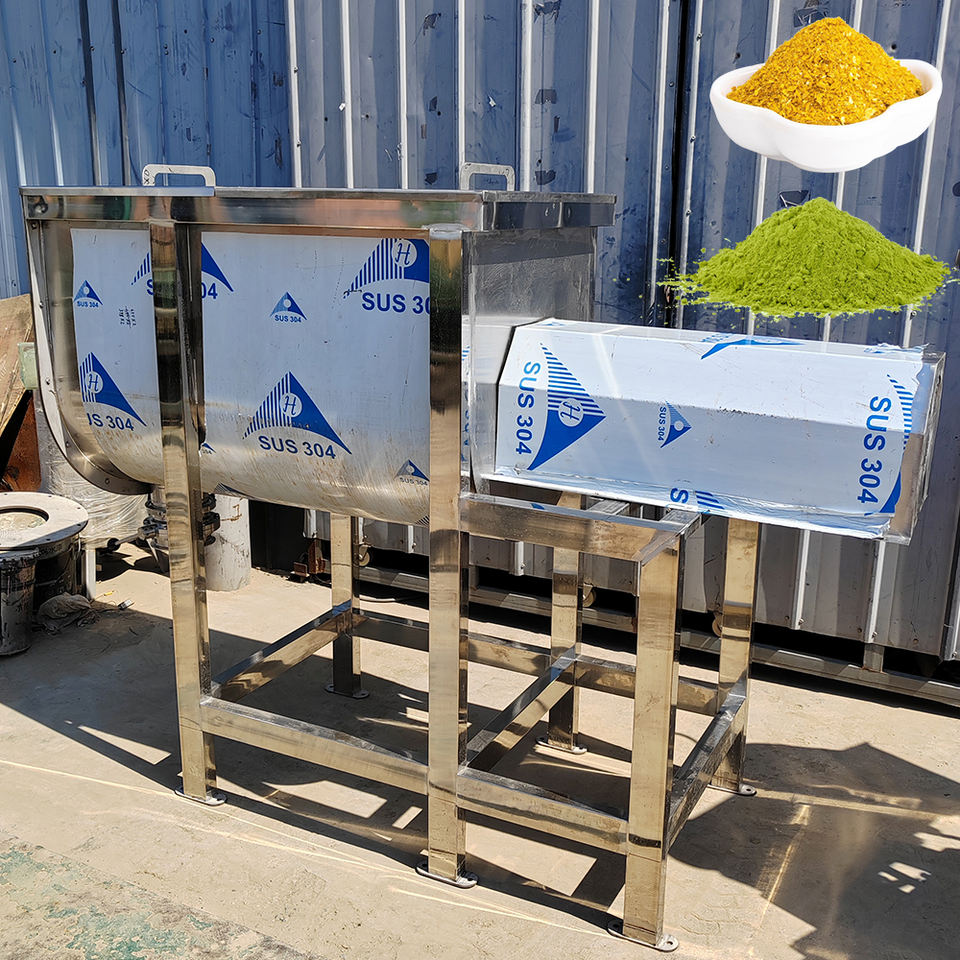 เครื่องผสมผงสแตนเลสแบบอัตโนมัติชนิดสายพานเกลียวแนวนอนพร้อมฟังก์ชั่นอบแห้งสำหรับชานมและผงแห้ง