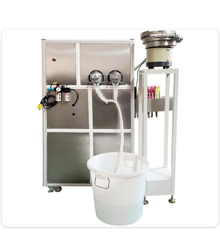เครื่องบรรจุภัณฑ์อัตโนมัติสำหรับบรรจุของเหลว เช่น น้ำยาซักผ้า เครื่องดื่ม น้ำ ลงในถุงแบบตั้งได้ (Doypack) พร้อมฝาปิดและซีล