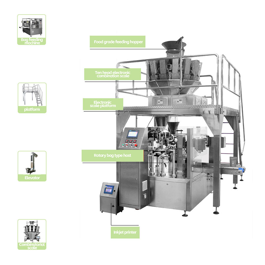 เครื่องบรรจุถุงซิปแบบตั้งอัตโนมัติสภาพใหม่เครื่องบรรจุเม็ดสำหรับถั่วช็อกโกแลตส่วนประกอบวัสดุไม้-มอเตอร์
