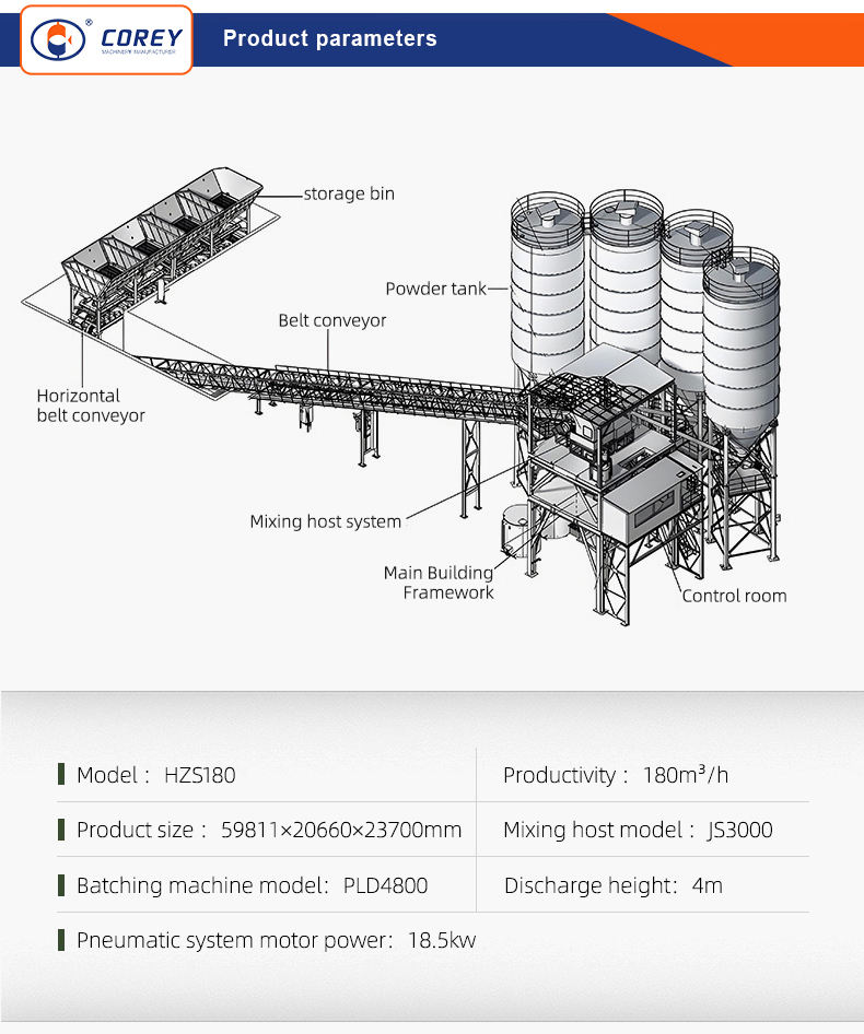 โรงงานผสมคอนกรีตแบบอยู่กับที่อัตโนมัติ พร้อมอุปกรณ์ผสมซีเมนต์และวัสดุผสมสำเร็จรูป พร้อมเครื่องยนต์และส่วนประกอบหลัก