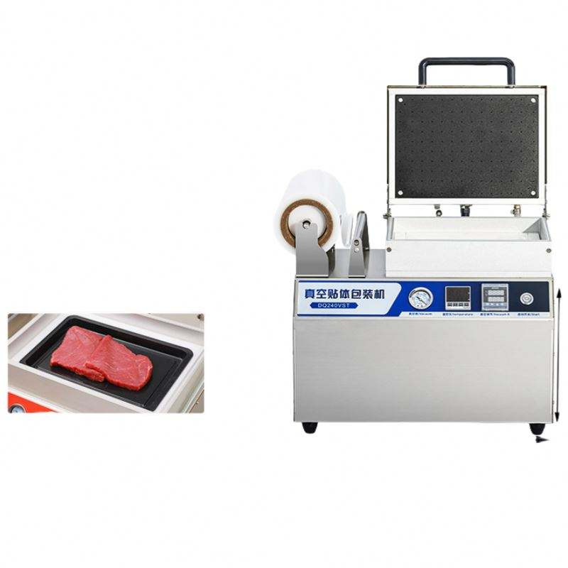เครื่องบรรจุภัณฑ์ฟิล์มถนอมอาหารแบบถาดสุญญากาศอัตโนมัติสำหรับเนื้อสเต็ก เนื้อสด อาหารทะเล-สดใหม่