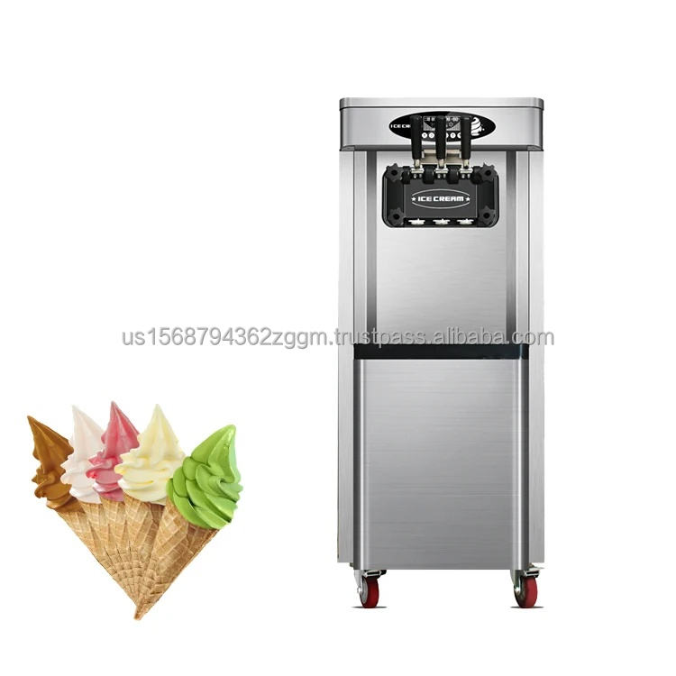 เครื่องทำไอศกรีมแบบเกลียวเย็น2ชั้นระบายความร้อนด้วยอากาศอัตโนมัติแบบแนวตั้ง3รสชาติ