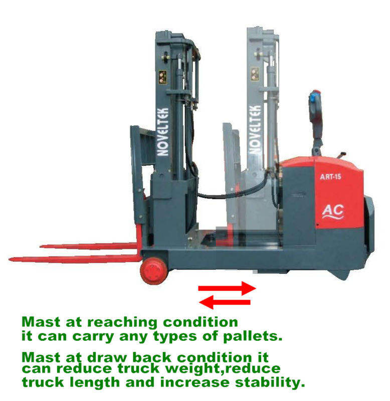 รถยก AGV อัตโนมัติสำหรับคลังสินค้า รถยกไฮดรอลิกแบบ Reach Truck ขับเคลื่อน 4 ล้อ รับน้ำหนัก 1 ตัน ได้รับการรับรองมาตรฐาน CE/ISO ใหม่ ประสิทธิภาพสูง สำหรับการจัดเก็บแบบ AC