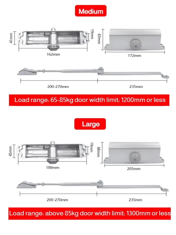 อุปกรณ์ปิดประตูบานเลื่อนอัตโนมัติรุ่น SSR DCL14 แบบไฮดรอลิก สำหรับประตูกันไฟในบ้าน ปรับความเร็วได้ง่าย รองรับน้ำหนัก 15-100 กก.