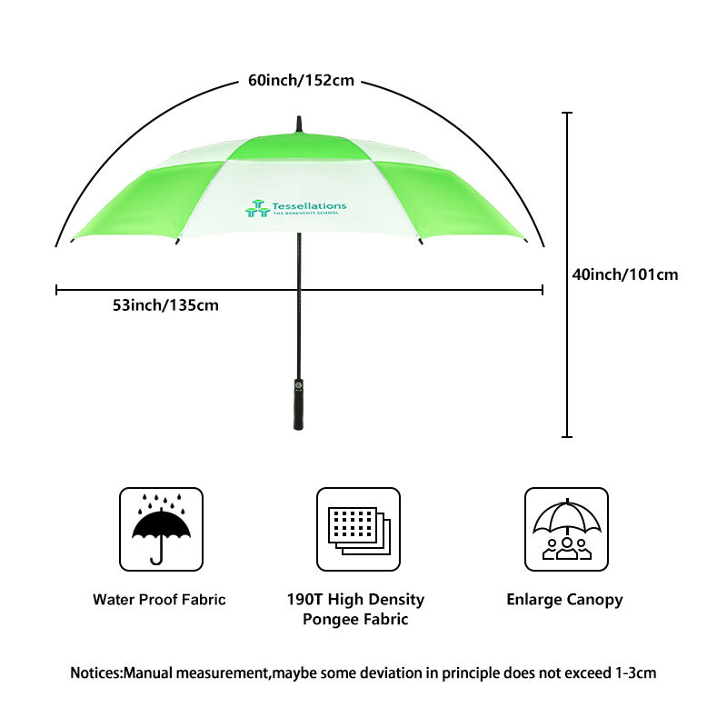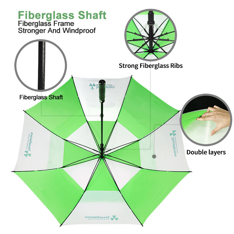 ร่มกอล์ฟสองชั้นกันลม มีช่องระบายอากาศ พร้อมโลโก้ที่กำหนดเองได้