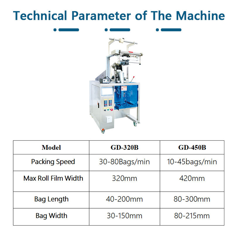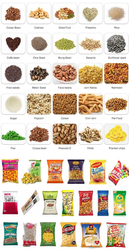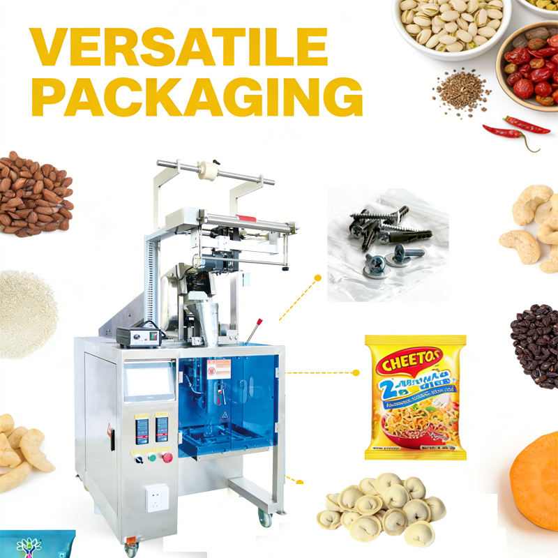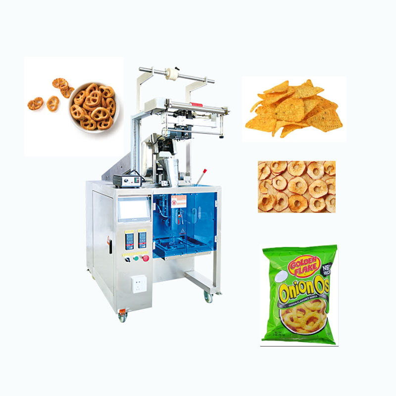เครื่องบรรจุอาหารแบบอัตโนมัติแนวตั้งสำหรับผักผลไม้อบแห้งแบบชิปบิสกิตขนมขบเคี้ยวขนมขบเคี้ยวผลิตภัณฑ์ที่มีรูปร่างไม่สม่ำเสมอ