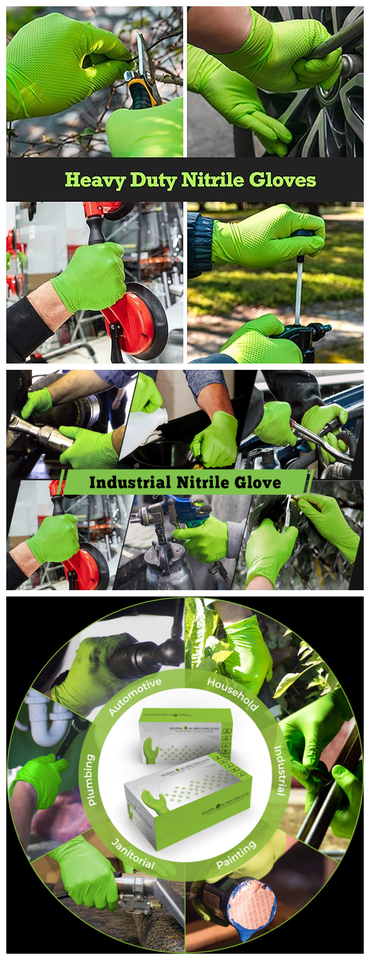 ถุงมือยางไนไตรล์สำหรับรถยนต์ทนทานถุงมือ8Mil สารเคมีสีเขียวสำหรับซ่อมรถยนต์ถุงมือแบบใช้แล้วทิ้ง EN455ทนทาน