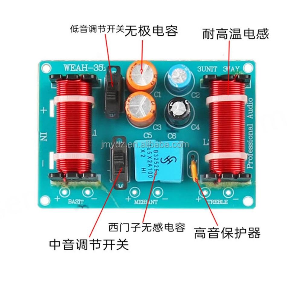 ตัวแบ่งความถี่สามทางสำหรับยานยนต์ ความถี่สูง กลาง และต่ำ ตัวแบ่งความถี่แบบปรับได้สี่ระดับ ระบบเสียงลำโพงรถยนต์ DIY 150W