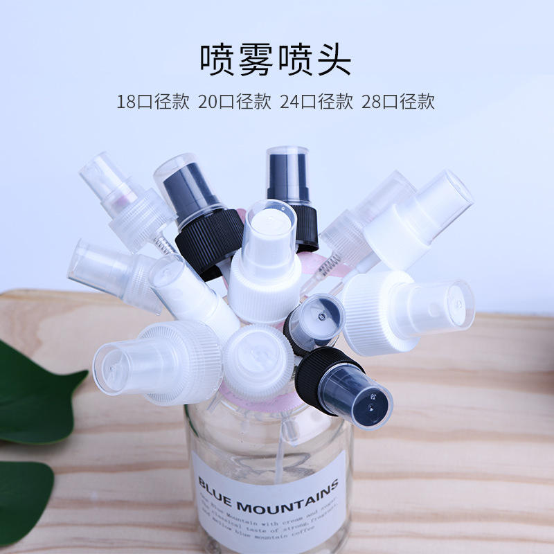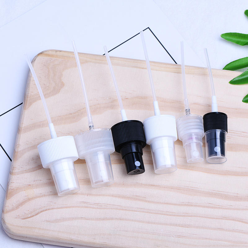 หัวฉีดสเปรย์แบบมีฟันปิดครึ่งหนึ่ง 18-28 ฟัน แบบพ่นละอองละเอียด ทำจากพลาสติก PP สำหรับบรรจุภัณฑ์เครื่องสำอาง ผลิตภัณฑ์ความงาม และสารเคมีในชีวิตประจำวัน