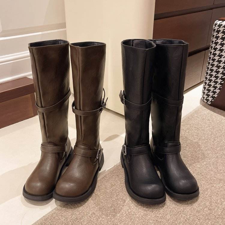 Autumn Ankle Boots Glitter Upper PU Toe High Tube Rubber Square Heel Waterproof Thermal Warm Features Genuine Leather Wool