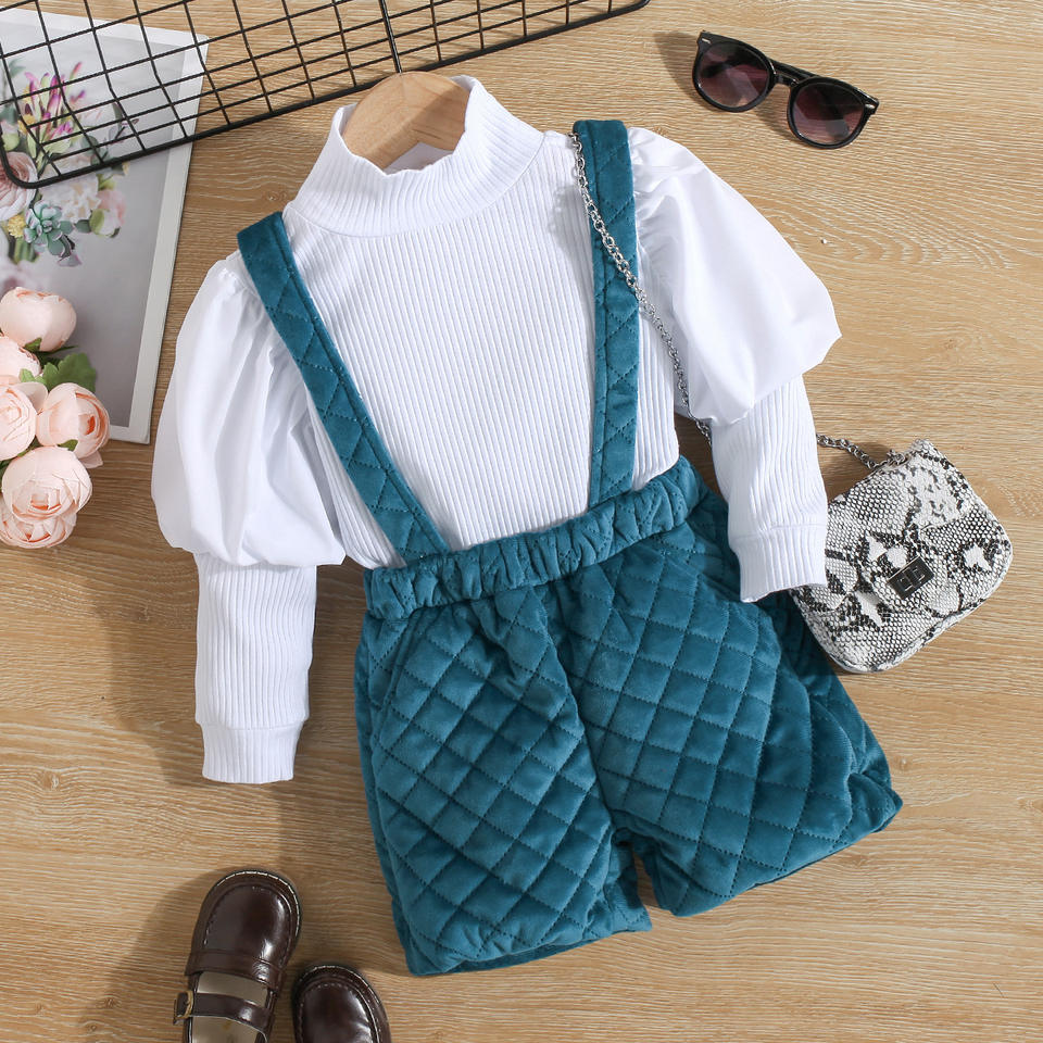 เสื้อผ้าเด็กผู้หญิงฤดูใบไม้ร่วง ชุดเด็กผู้หญิง 2 ชิ้น เสื้อแขนยาวสีขาวพร้อมกางเกง เสื้อผ้าเด็ก