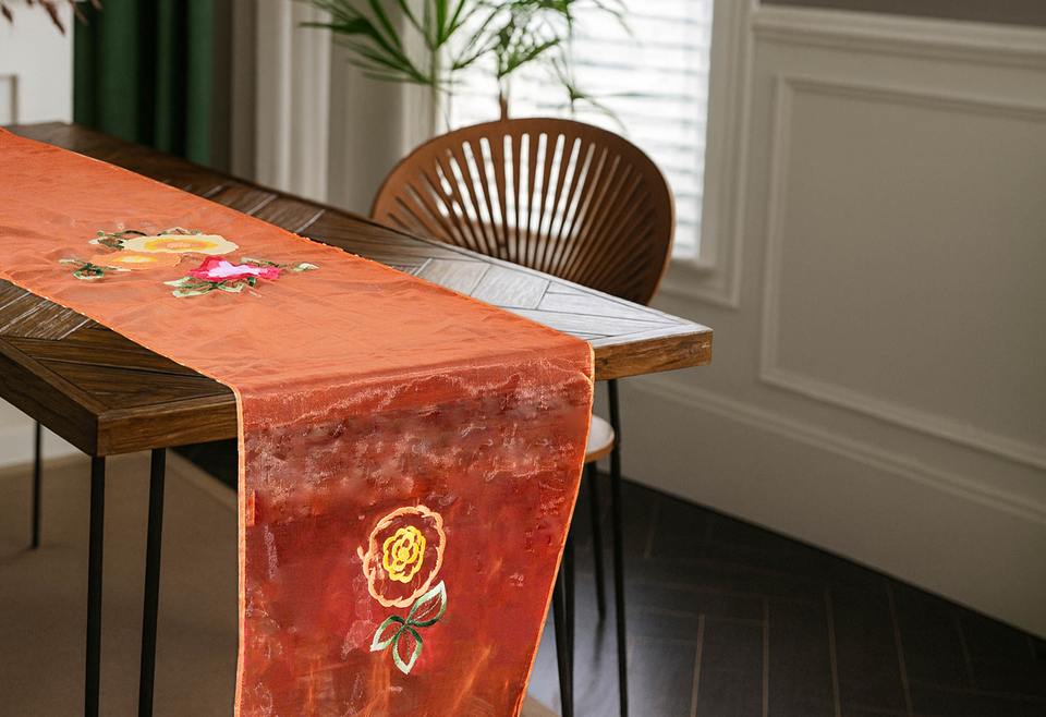 ผ้าปูโต๊ะออร์แกนซ่าลายดอกไม้ฤดูใบไม้ร่วง | ผ้าออร์แกนซ่าเนื้อละเอียดพรีเมียม ลายดอกไม้ฤดูใบไม้ร่วงสุดหรู ผ้าปูโต๊ะตกแต่ง