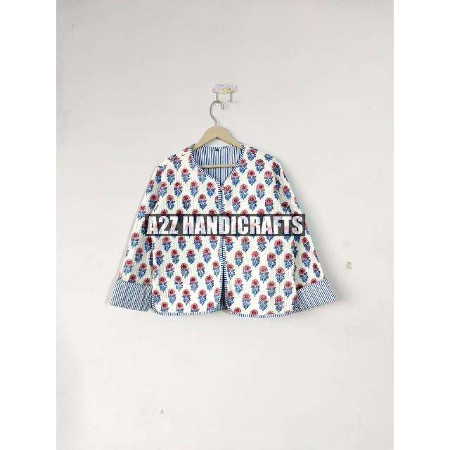 เสื้อโค้ทกิโมโนสั้นสไตล์โบฮีเมียนฤดูใบไม้ร่วงบุผ้าคอตตอนอินเดียทำมือพิมพ์ลายสัตว์
