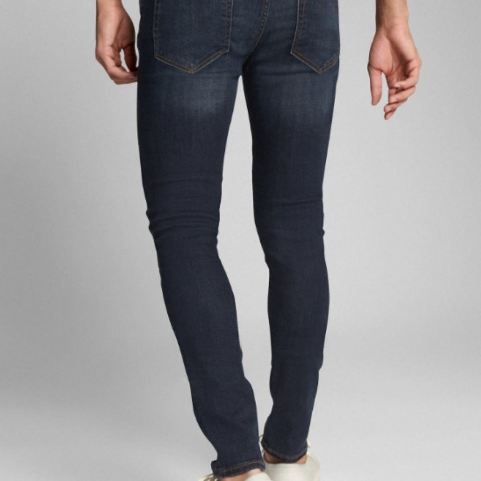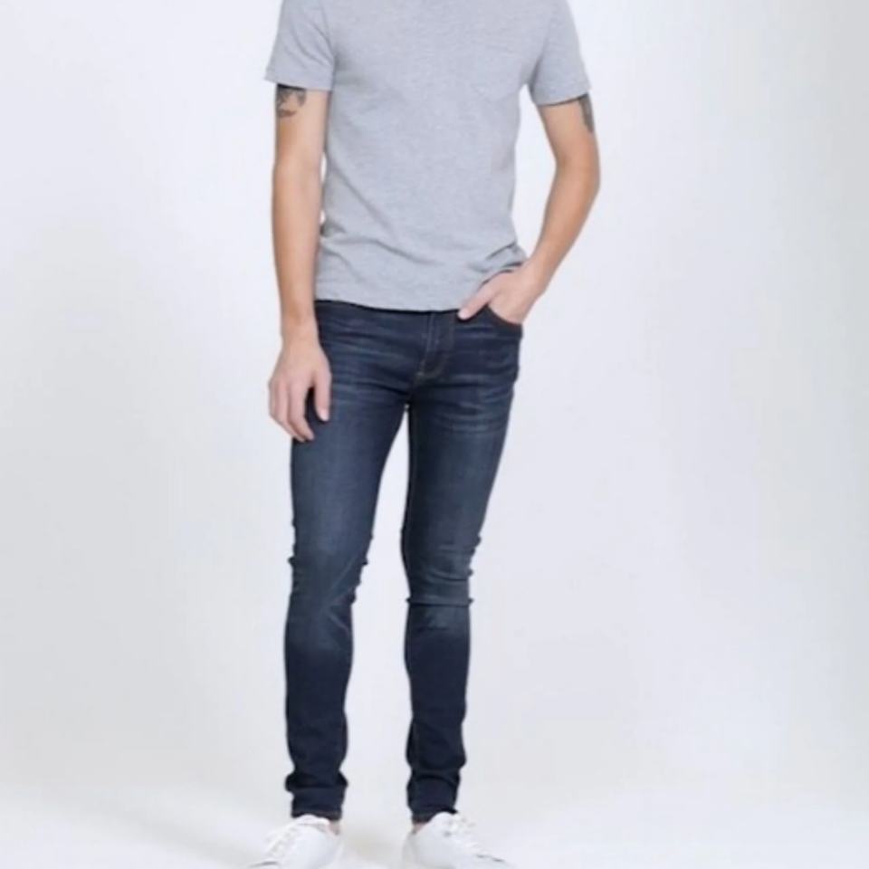 กางเกงยีนส์ทรงสกินนี่สีน้ำเงินเข้มสำหรับผู้ชาย สไตล์ลำลองสำหรับฤดูใบไม้ร่วง
