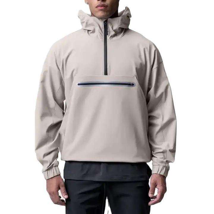 เสื้อฮู้ดกันลมกันน้ำสไตล์ลำลองสำหรับฤดูใบไม้ร่วง เสื้อผ้าผู้ชายทรงโอเวอร์ไซส์ เสื้อแจ็คเก็ตสปอร์ตสำหรับผู้ชาย