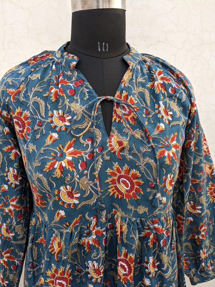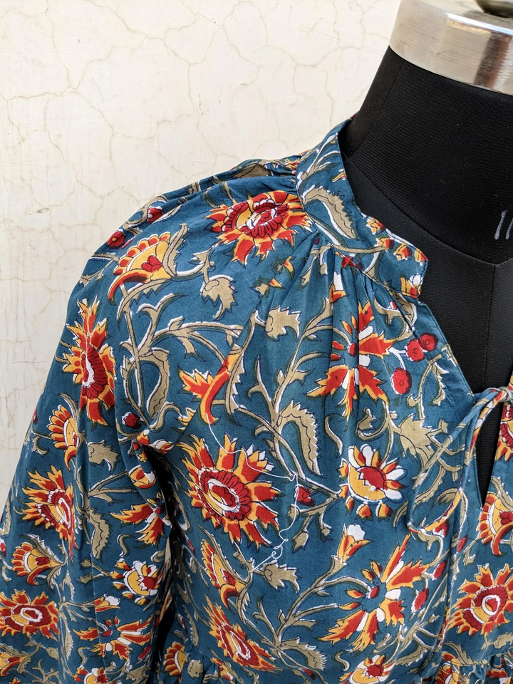 ชุดเดรสยาวลายพิมพ์บล็อกมือ คอลเลคชั่นฤดูใบไม้ร่วง ลายพื้นเรียบ สไตล์อินเดีย ผ้าทอแบบไม่ถักทอ ลายดอกไม้