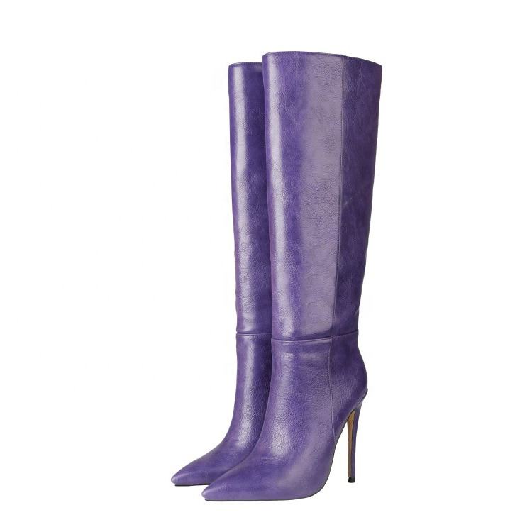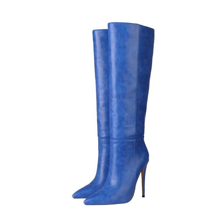 รองเท้าบูทผู้หญิงทรงสูงถึงเข่า ส้นบาง ไซส์ใหญ่ 45 แบบสวม ปลายแหลม แฟชั่นเรียบหรู เหมาะสำหรับใส่เดทช่วงฤดูใบไม้ร่วง