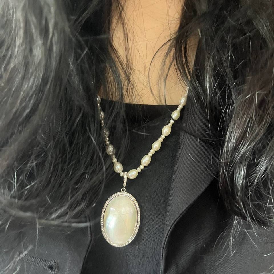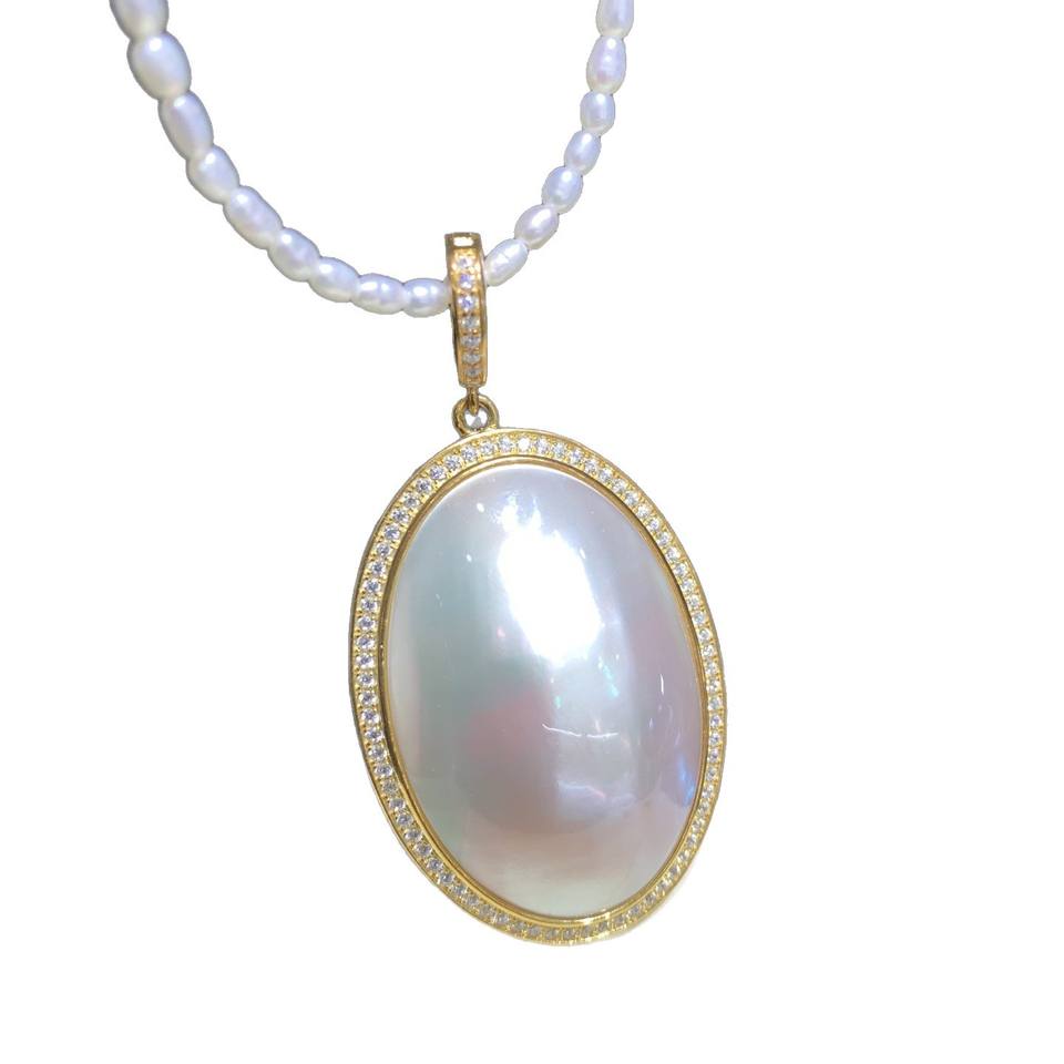 จี้ไข่มุกน้ำเค็มทรงรี Wenchi Autumn Fairy Tale ประดับเพชรเซอร์โคเนียชุบทอง ขนาดใหญ่ ดีไซน์คลาสสิก สวยสง่า
