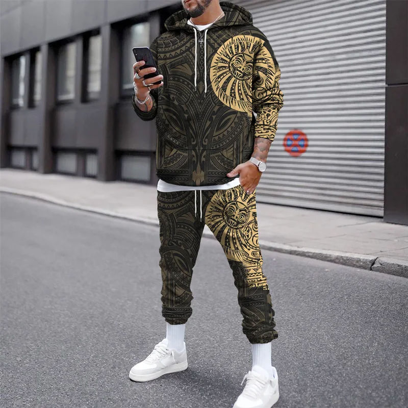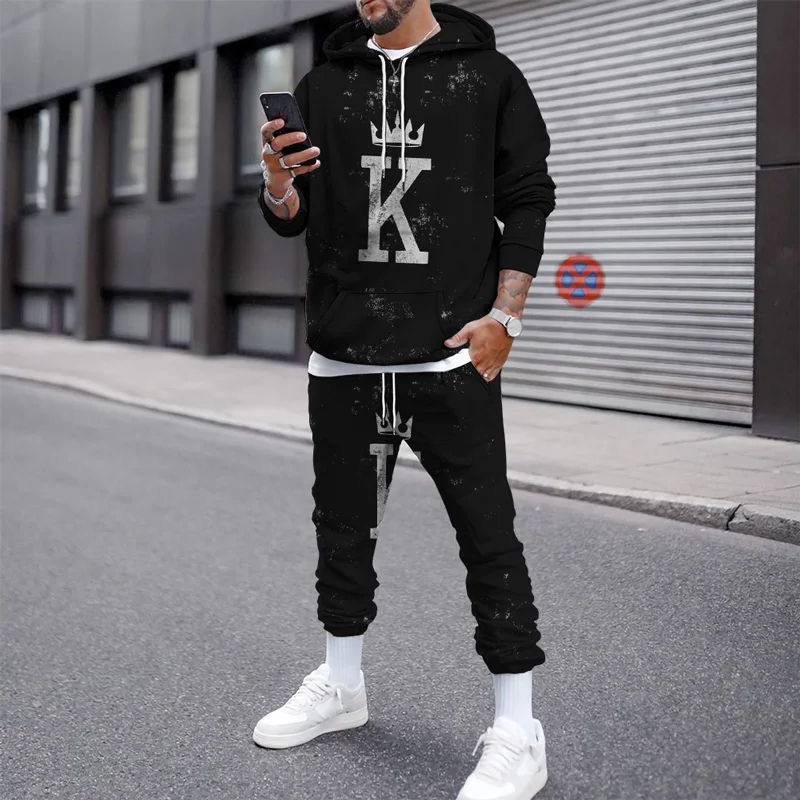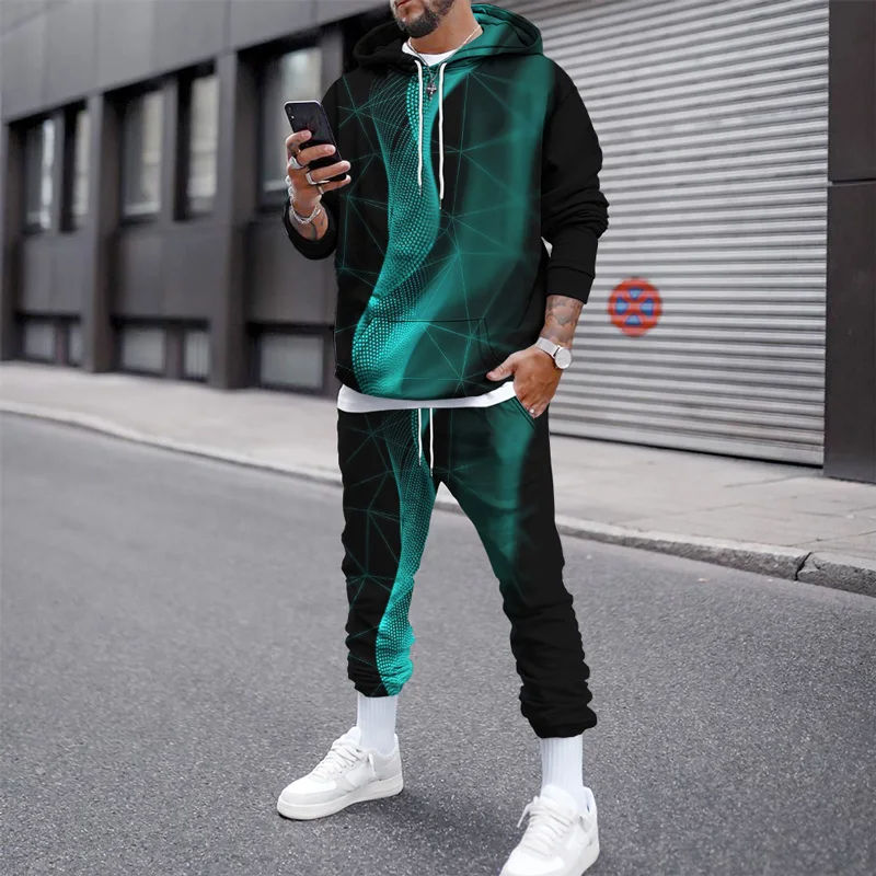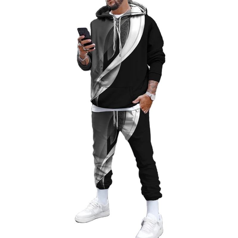 ชุดสูทมีฮู้ดพิมพ์ลาย3D แฟชั่นฤดูใบไม้ร่วงชุด2ชิ้นแนวสตรีทเสื้อกันหนาวแบบสวมหัวชุดวอร์มลำลองสำหรับผู้ชายชุดวอร์มมีฮู้ด