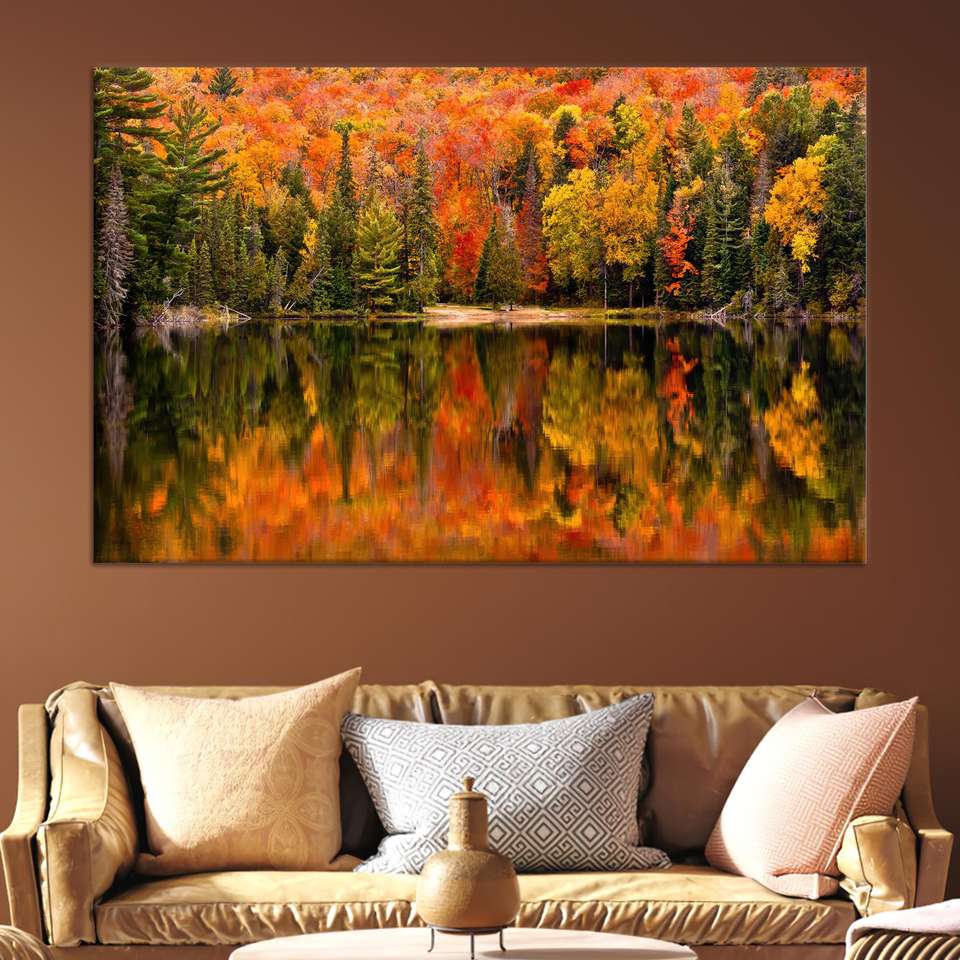 ภาพพิมพ์บนผ้าใบลายป่าฤดูใบไม้ร่วง - งานศิลปะตกแต่งผนังลายธรรมชาติในป่าไม้ พิมพ์บนผ้าใบแบบห่อ