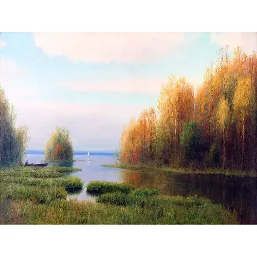 ฤดูใบไม้ร่วง g. ภาพจิตรกรรมฝาผนังกระเบื้องเซรามิกของ kondratenko การออกแบบหินอ่อนด้วยต้นไม้หญ้าทะเลสาบสำหรับตกแต่งผนัง