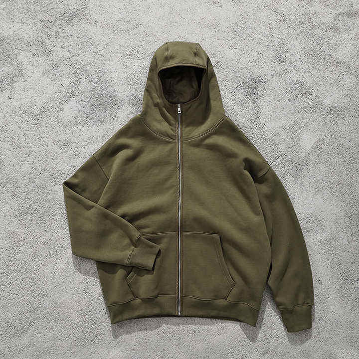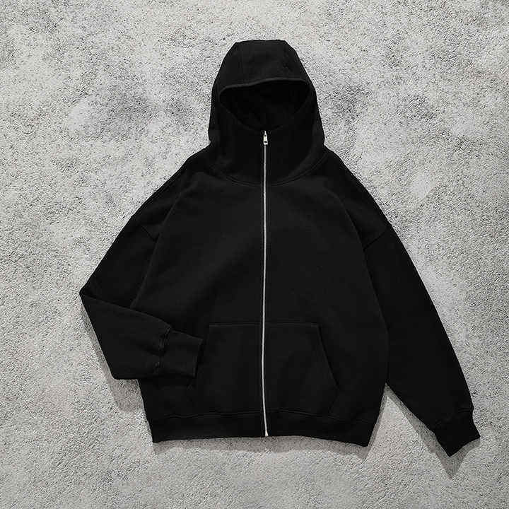 Autumn High Quality 350 GSM 70% Cotton Unisex Oversized Zip Hoodie Custom Logo Ninja Zipper Sweatshirts Embroidered Winter