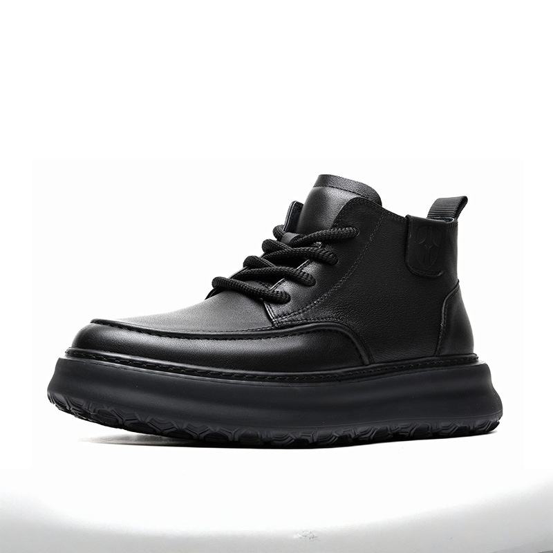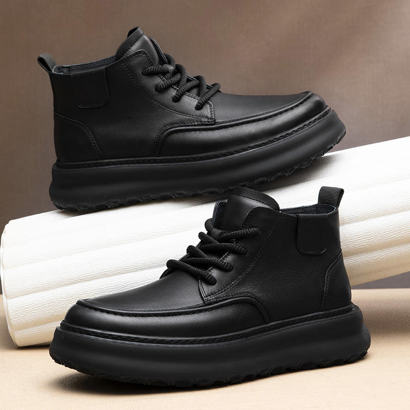 รองเท้าบูทหนังคลาสสิกของผู้ชายสำหรับฤดูใบไม้ร่วงรองเท้าบูตหนังวัวของผู้ชายเพิ่มความสูงไซส์ใหญ่พิเศษ