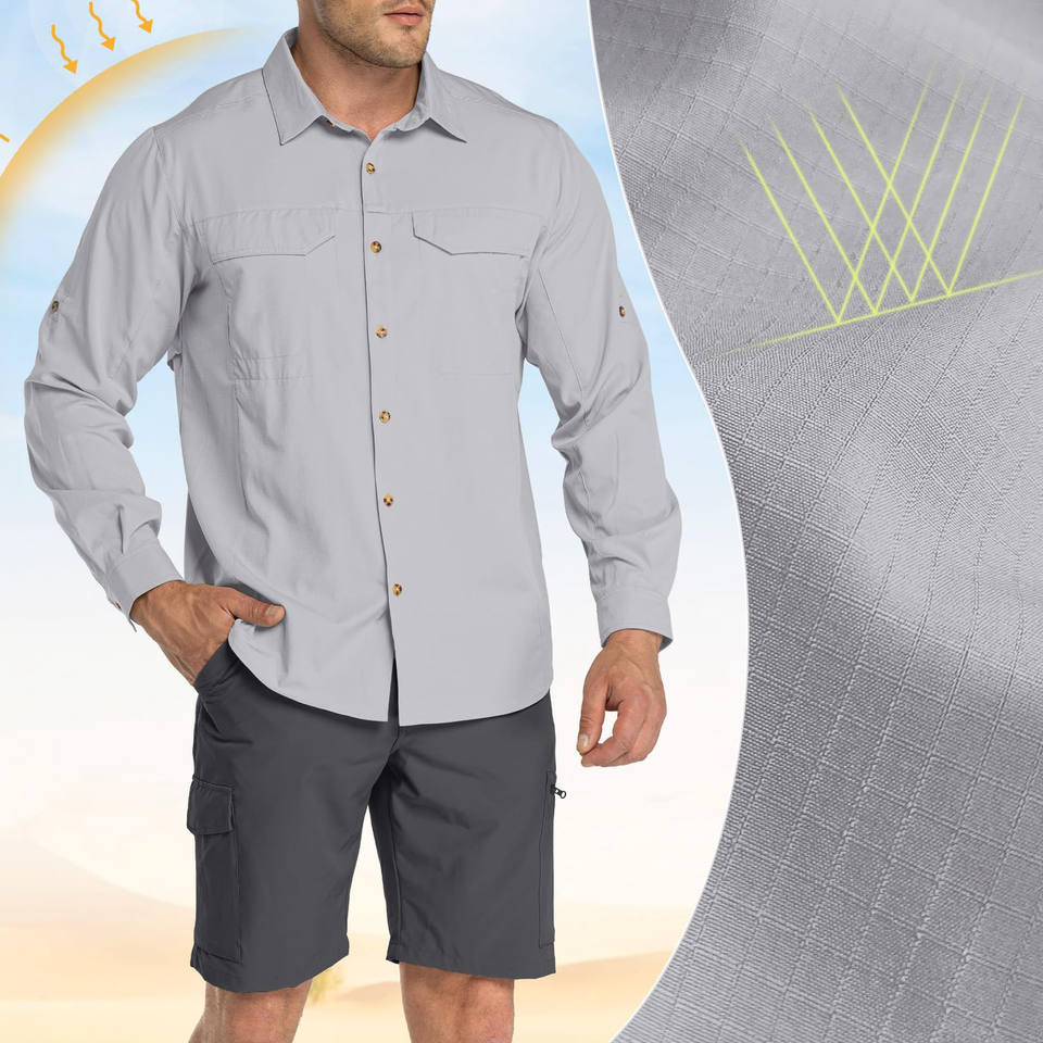 เสื้อเดินป่าฤดูใบไม้ร่วงสำหรับผู้ชายสไตล์ซาฟารีแขนยาวเสื้อเชิ้ตผู้ชายระบายอากาศได้ดีแห้งเร็วชุดทำงานกลางแจ้งเสื้อเดินป่าผู้ชาย