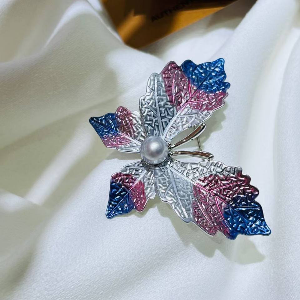 สินค้าขายดีประจำฤดูใบไม้ร่วง เข็มกลัดป่านแท้ แฟชั่นเครื่องประดับมุกอะโกย่าจากน้ำทะเล พร้อมใบอะคาเซีย ใบเมเปิล และผีเสื้อ ขายส่ง