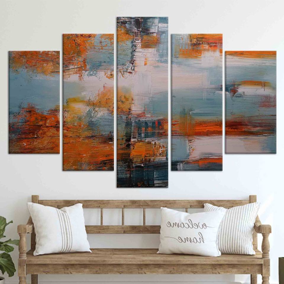 ภาพพิมพ์บนผ้าใบลายทิวทัศน์ฤดูใบไม้ร่วง: ศิลปะติดผนังแบบนามธรรมสมัยใหม่ ชุดผ้าใบ 5 ชิ้นแบบคละลาย