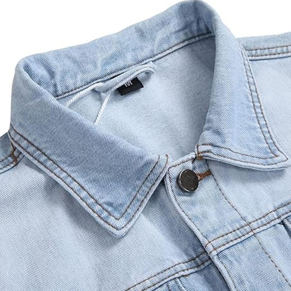 เสื้อโค้ทเดนิมผู้ชายสไตล์วินเทจ ล้างสี ปกพับ แขนยาว แจ็คเก็ตลำลองสำหรับผู้ชาย เสื้อคลุมผู้ชาย