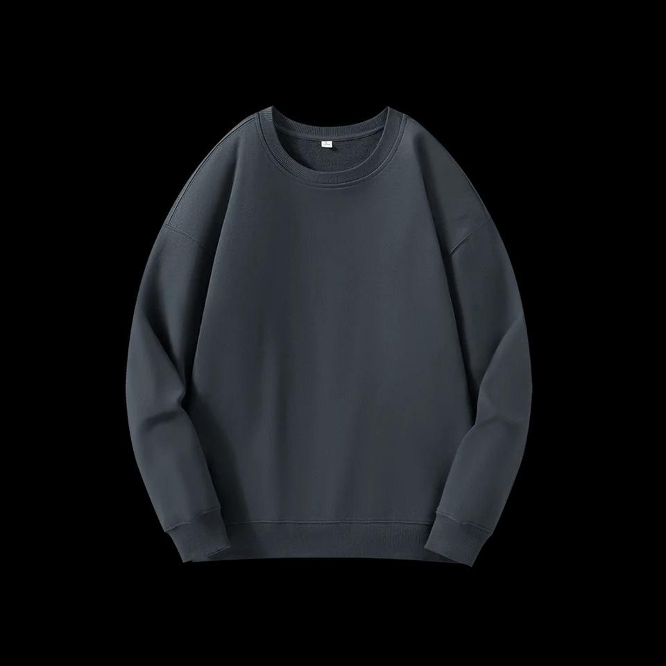 เสื้อสเวตเตอร์คอกลมผู้ชายผ้าฝ้าย100% ฤดูใบไม้ร่วงเสื้อ350gsm เทอร์รี่ทรงหลวมไซส์ใหญ่พิเศษเสื้อถักสีพื้นปรับแต่งได้สไตล์ลำลอง
