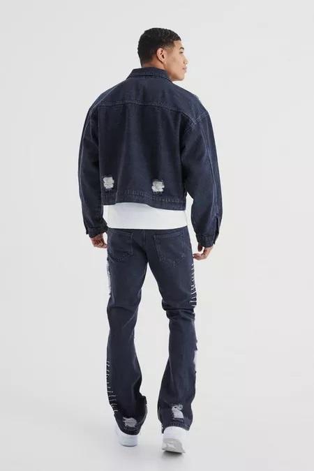 เสื้อแจ็กเก็ตกันลมแนวสตรีทสำหรับผู้ชายฤดูใบไม้ร่วงผ้าเดนิมหลากสีพร้อมชุดปรับแต่งได้ดีไซน์รอยขีดข่วน