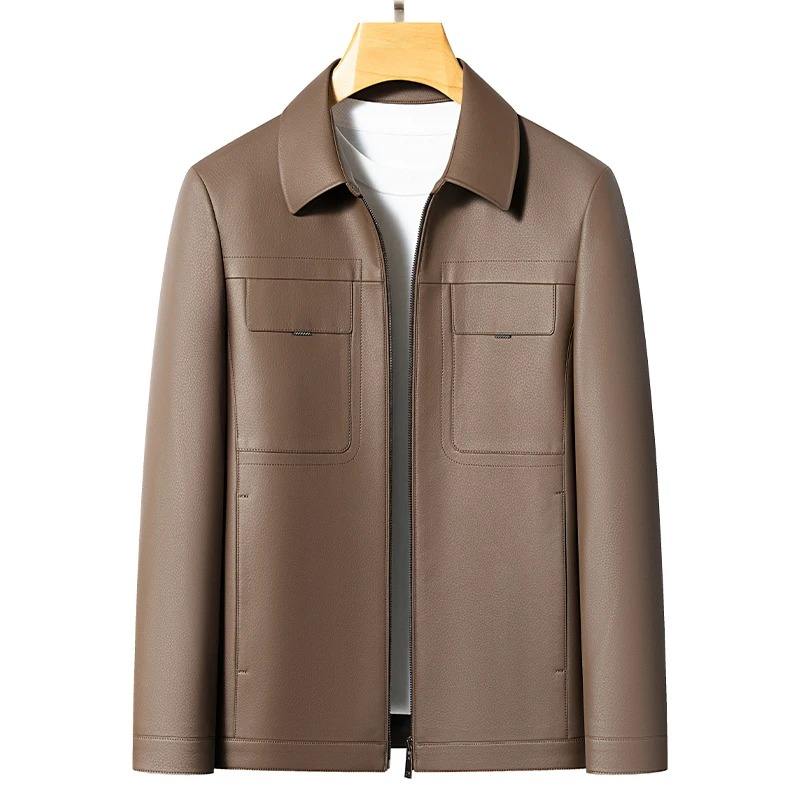 เสื้อโค้ทหนังผู้ชายแบบพับปกเข้ารูป, เสื้อโค้ทหนัง PU ขนาดใหญ่สไตล์ยุโรปและอเมริกันฤดูใบไม้ร่วง