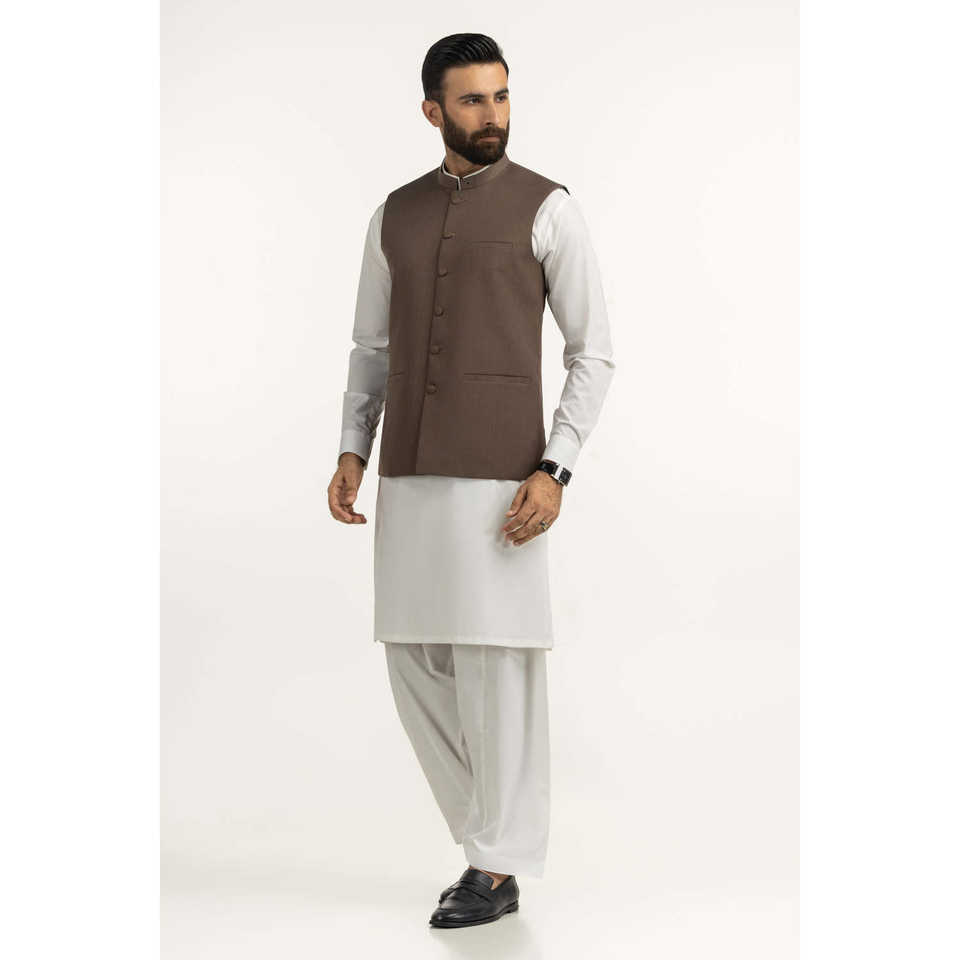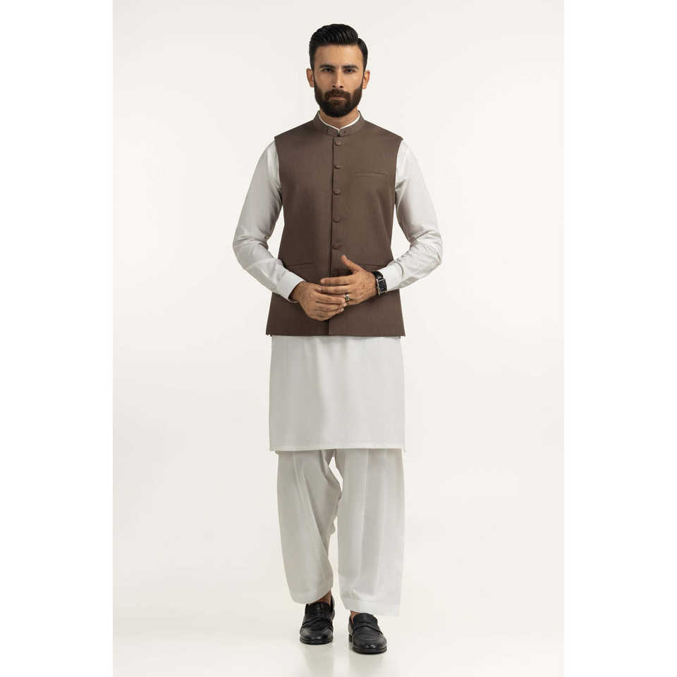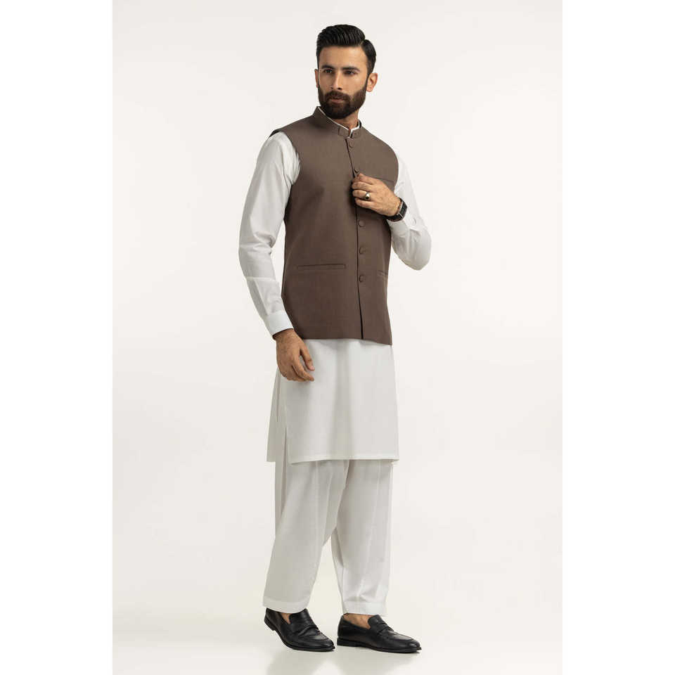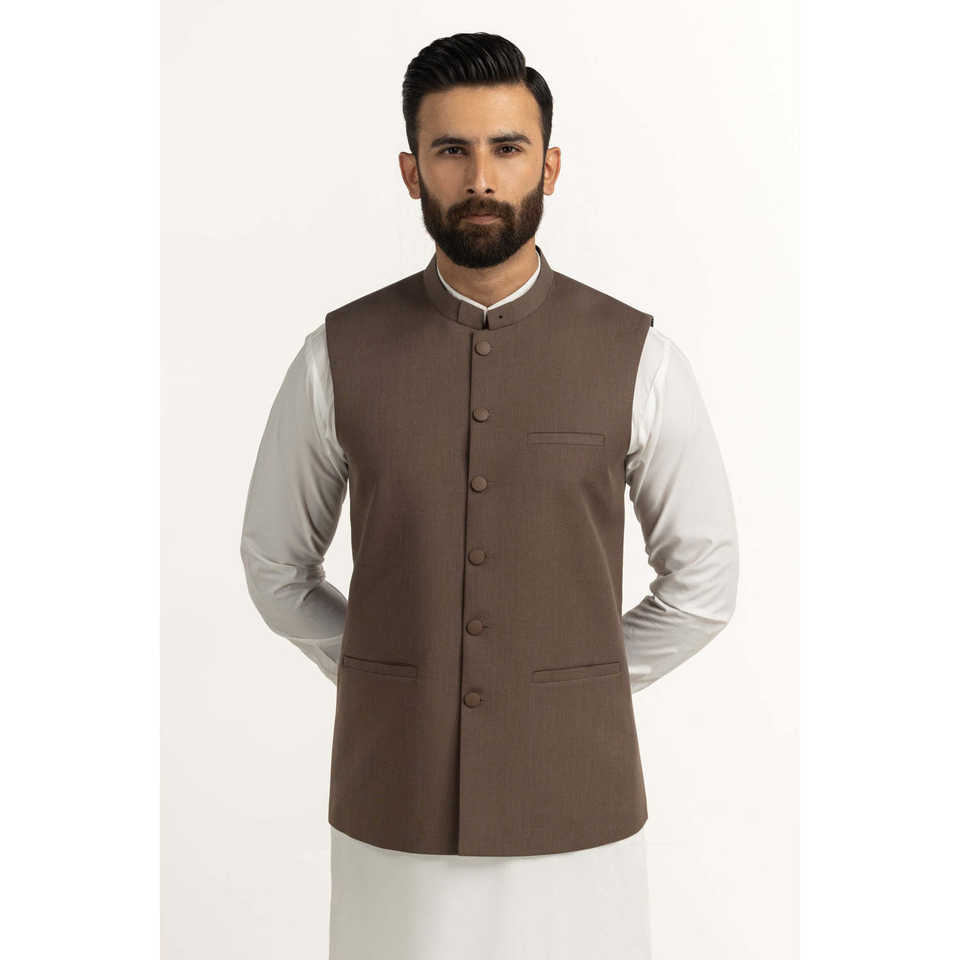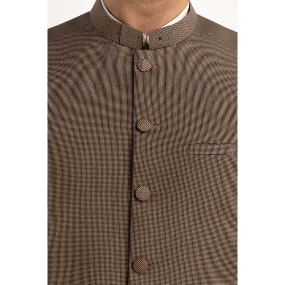 เสื้อกั๊กหนังผู้ชายสไตล์ทางการสำหรับฤดูใบไม้ร่วง คอจีน รุ่น WC-STY25-025 ทรงปกติ ผ้าแคนวาสผสมโพลีเอสเตอร์