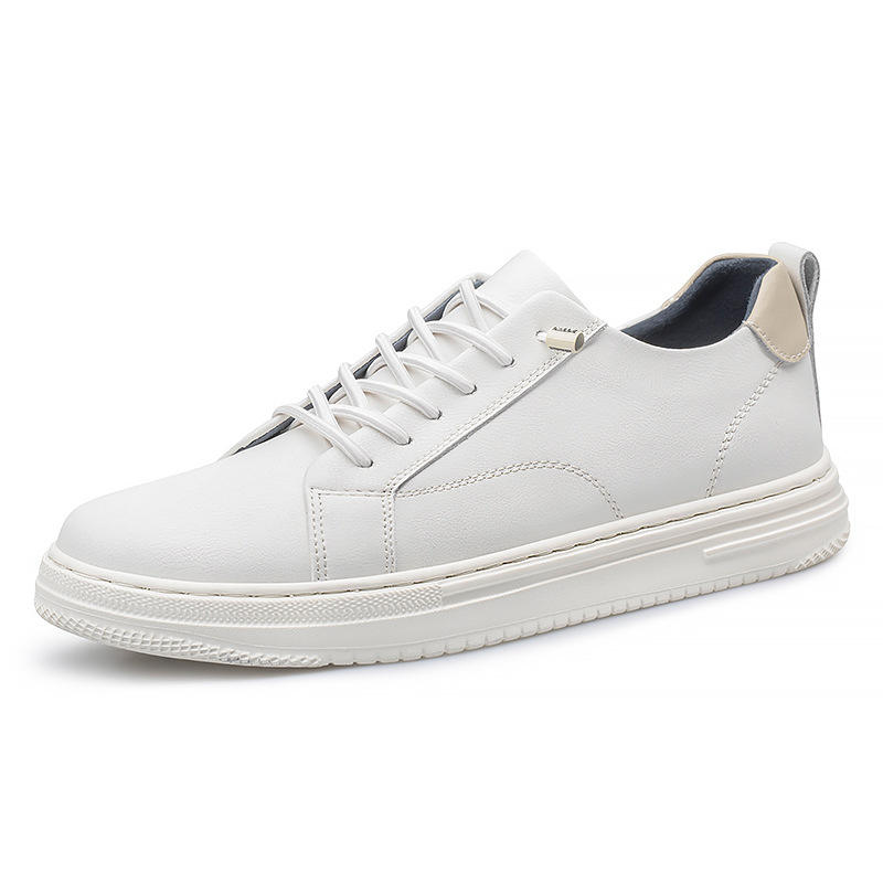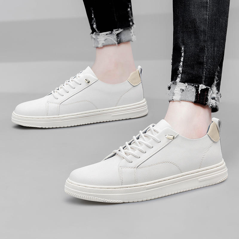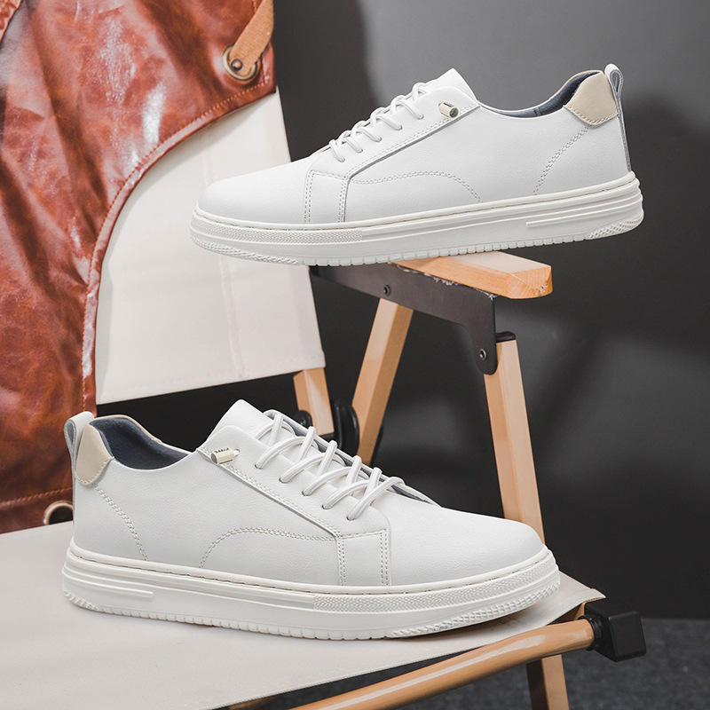 รองเท้าโลฟเฟอร์ผู้ชายแบบสวม หนังวัวแท้ ระบายอากาศได้ดี รูเล็กน้อย น้ำหนักเบา สีขาวล้วน แฟชั่นทันสมัยสำหรับฤดูใบไม้ร่วง