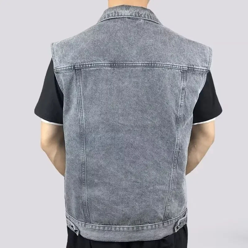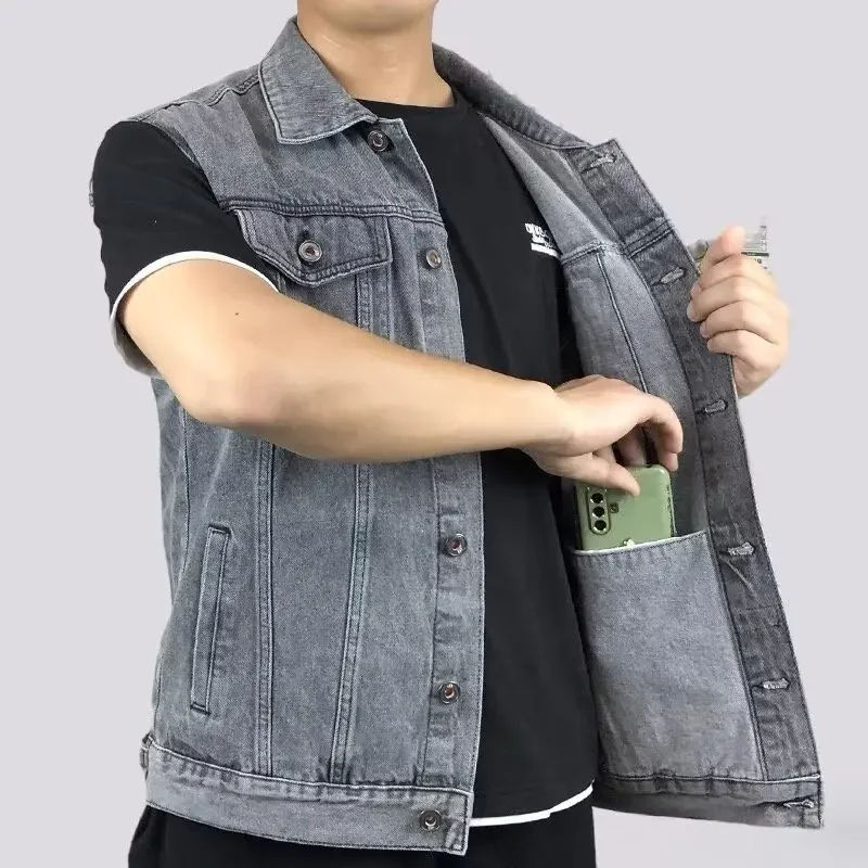 เสื้อกั๊กยีนส์ขาดๆ สไตล์วินเทจสำหรับผู้ชาย ใส่สบาย ระบายอากาศได้ดี เหมาะสำหรับฤดูใบไม้ร่วง แบบไม่มีแขน ติดกระดุม สไตล์คาวบอย ฮิปฮอป แฟชั่นลำลองแนวสตรีทแวร์