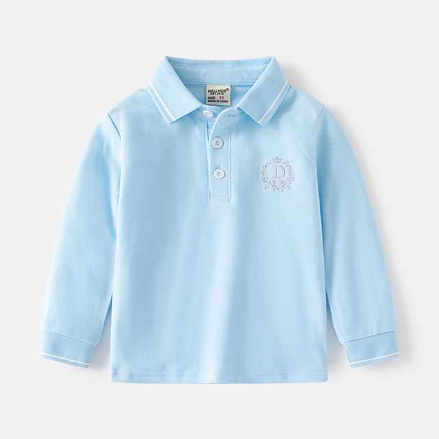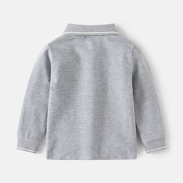 เสื้อโปโลเด็กผู้ชายสีพื้น แขนยาว คอปก สำหรับเด็กวัยหัดเดิน รุ่นใหม่ประจำฤดูใบไม้ร่วง รับสั่งทำขายส่ง