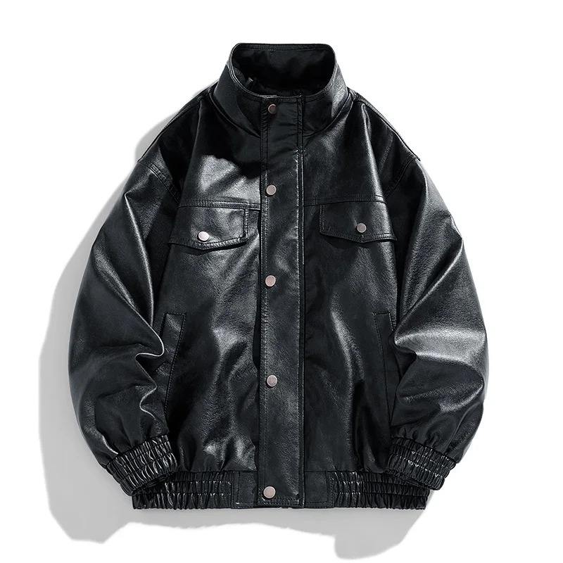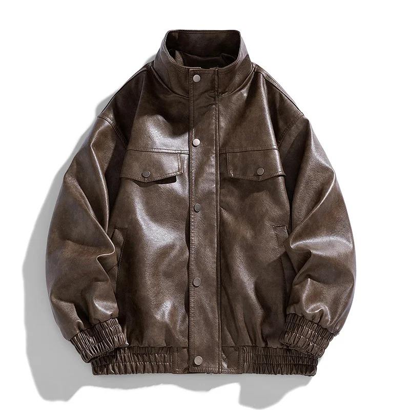 เสื้อโค้ทหนังสไตล์อเมริกันสำหรับฤดูใบไม้ร่วง, เสื้อแจ็กเก็ตหนังนักบินไฮสตรีทอเมริกันสูทสำหรับคู่รัก