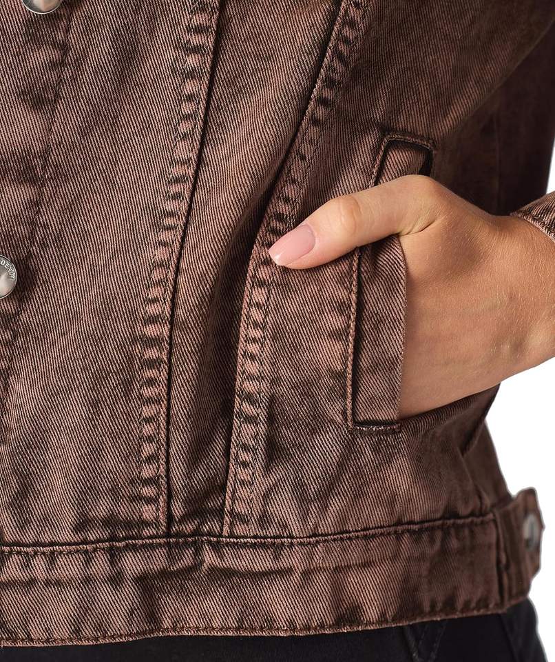 แจ็คเก็ตยีนส์ผ้าฝ้ายสีทึบ