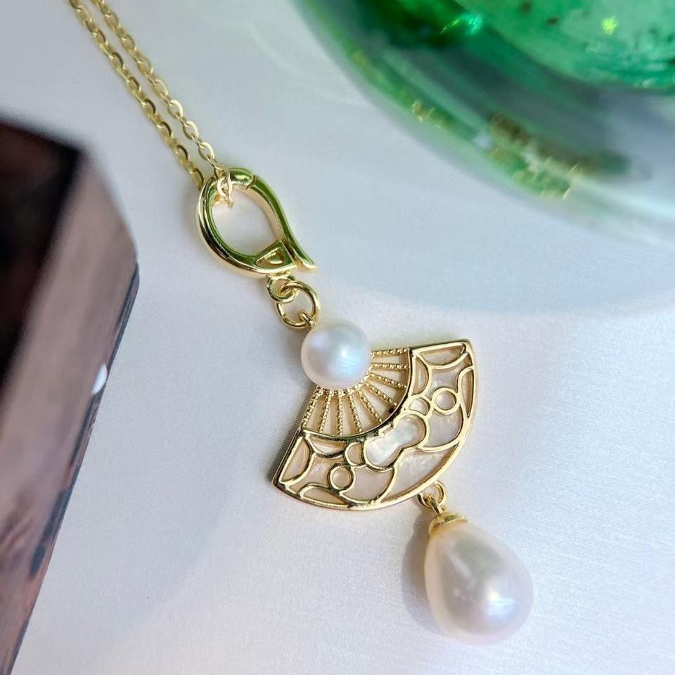 ต่างหูห้อยสไตล์จีนย้อนยุคยอดนิยมประจำฤดูใบไม้ร่วง ชุดเครื่องประดับจี้เปลือกหอยแฟชั่น ดีไซน์พัดโปร่ง จี้เปลือกหอยสำหรับคุณแม่ ดีไซน์เย้ายวน