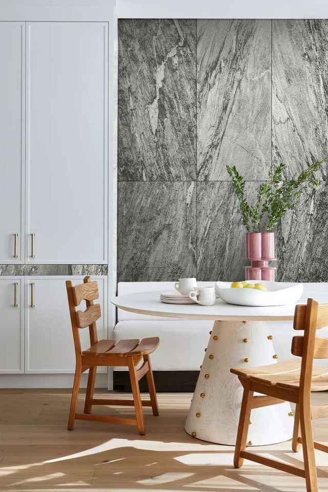 แผ่นวีเนียร์หินธรรมชาติแบบชนบทสำหรับฤดูใบไม้ร่วงแผ่นกระดานชนวนสีเขียวมีความยืดหยุ่นน้ำหนักเบามีความยืดหยุ่นสูงขนาด122x244ซม.