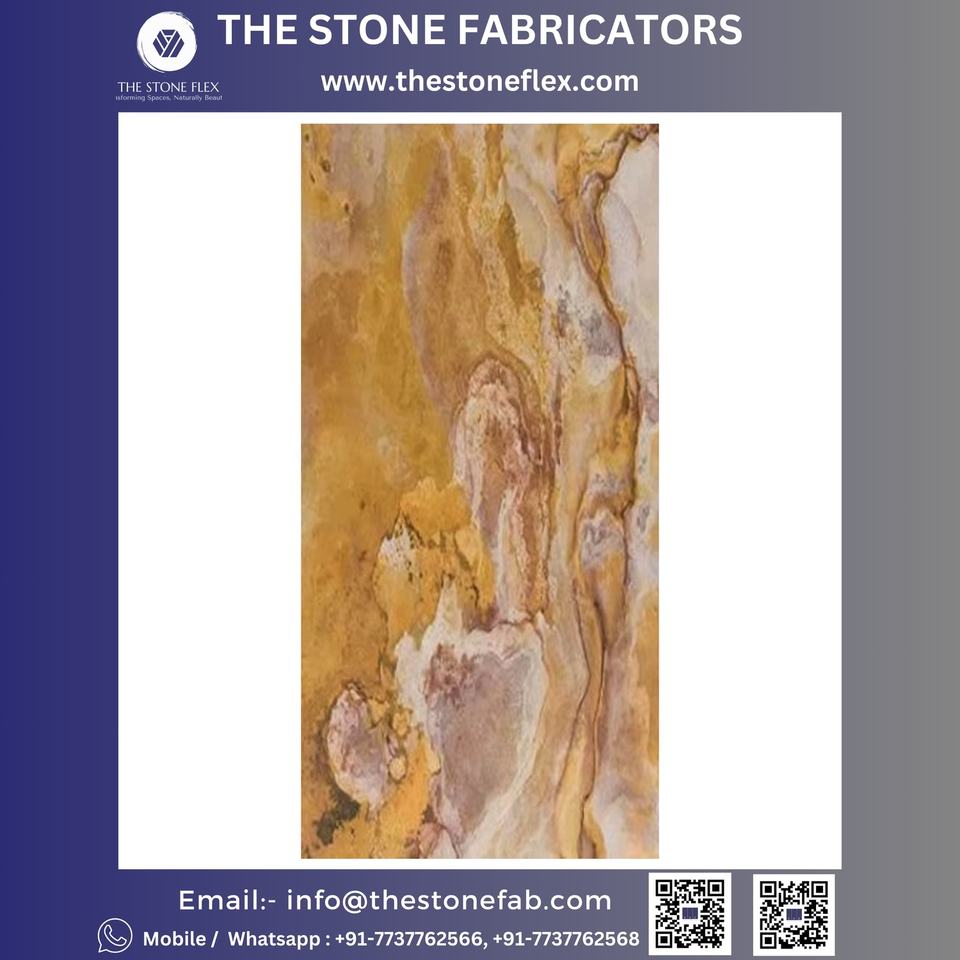 แผ่นวีเนียร์หินธรรมชาติโปร่งแสงบางพิเศษยืดหยุ่นในฤดูใบไม้ร่วงใช้ภายนอกโรงแรมแบบแยกพื้นผิวแบบอินเดีย