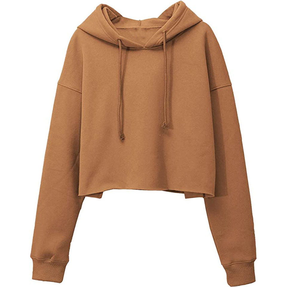 เสื้อกันหนาวมีฮู้ดสำหรับผู้หญิงเสื้อครอปทรงโอเวอร์ไซส์ใส่สบายฤดูใบไม้ร่วง