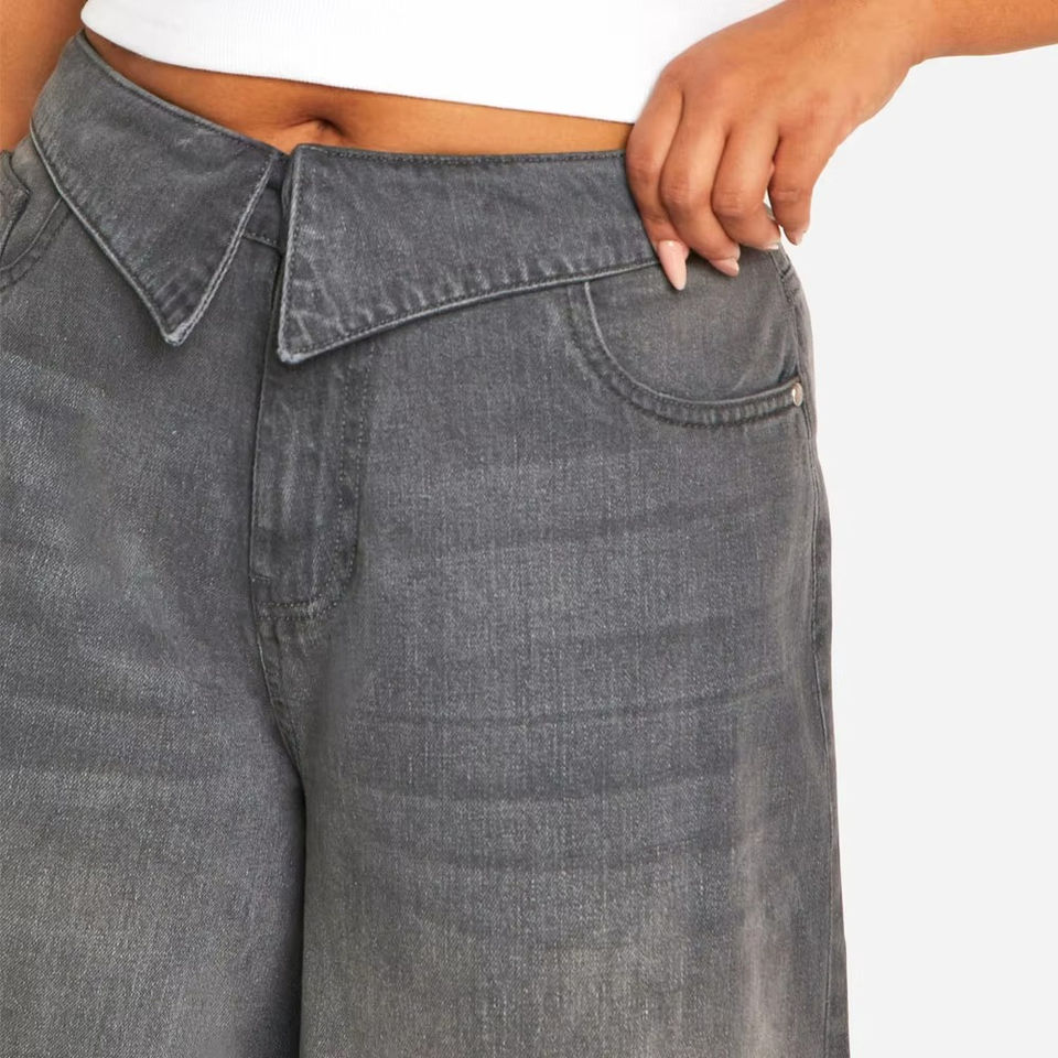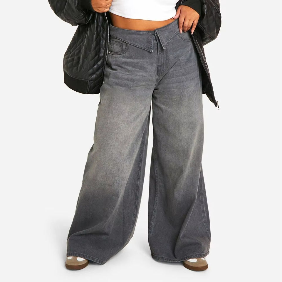 กางเกงยีนส์ทรงขาบานเอวกลางสำหรับผู้หญิง สไตล์สตรีทแวร์ ลุคซีดจาง สำหรับฤดูใบไม้ร่วง ขายส่ง