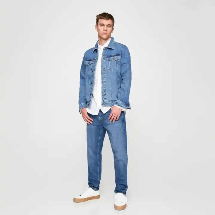 แจ็คเก็ตยีนส์วินเทจฤดูใบไม้ร่วงสำหรับผู้ชาย ทรงเข้ารูป สไตล์คลาสสิกลำลอง เสื้อโค้ทฤดูหนาว ผ้าฝ้าย 100% สวมใส่สบาย ผลิตตามสั่ง คุณภาพสูง ด้านหน้า