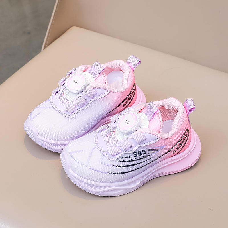 Autumn Spring New Models Boys & Girls Soft-Soled Mesh Breathable Running Shoes Casual Dad Shoes Rotating Buttons for Children