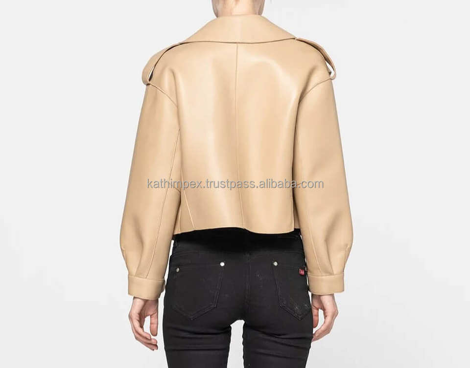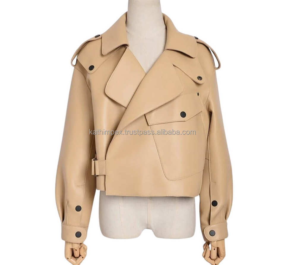 แจ็กเก็ตหนังสีเบจของผู้หญิงสำหรับฤดูใบไม้ร่วงฤดูใบไม้ผลิเสื้อโอเวอร์ไซส์ปกคอเสื้อคอปกแบบโอเวอร์ไซส์เนื้อผ้าระบายอากาศได้ดีซับในแบบหลวมพอดีตัว