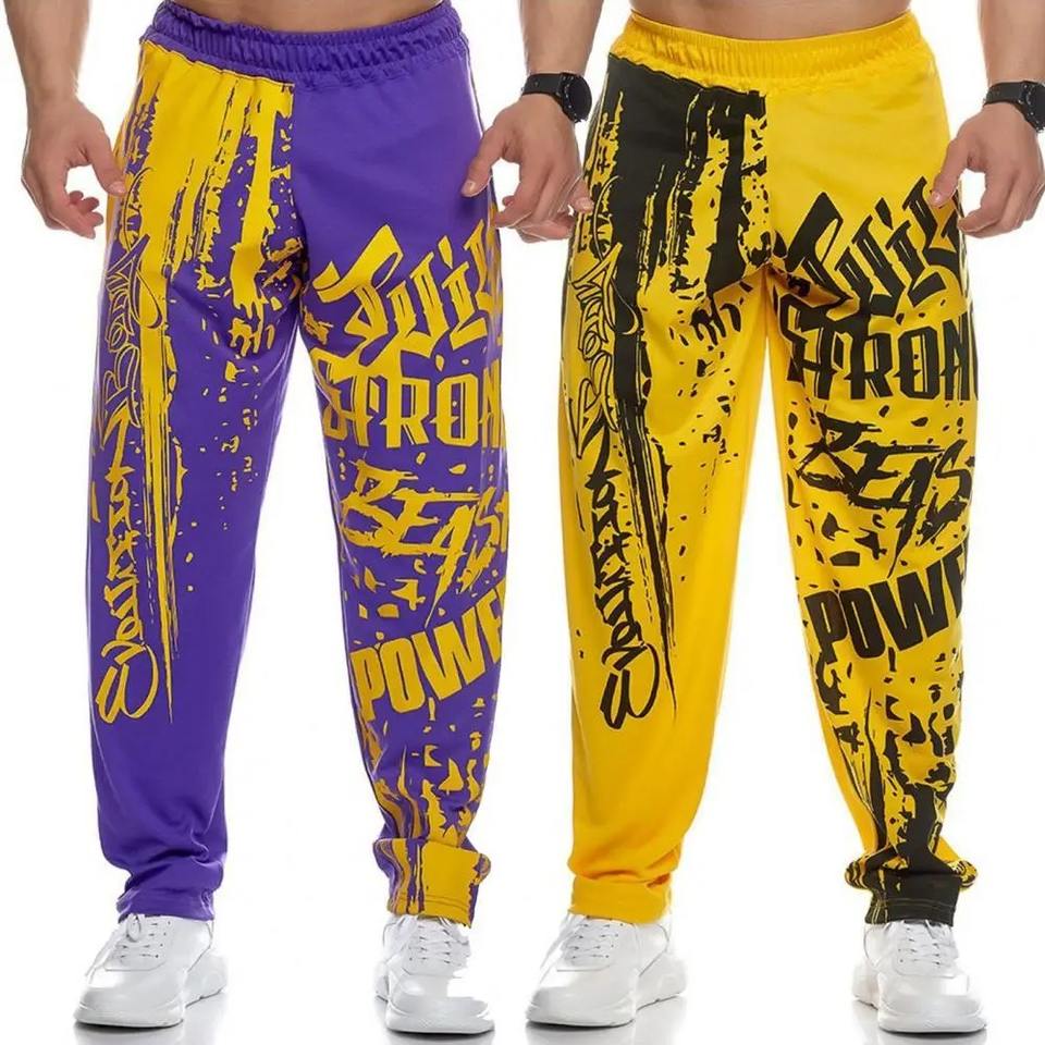 Men Casual Summer 100% Cotton Sweatpants Long Letter Print Breathable High Waist Anti-Wrinkle Flat Front Style Fabulous Sports
