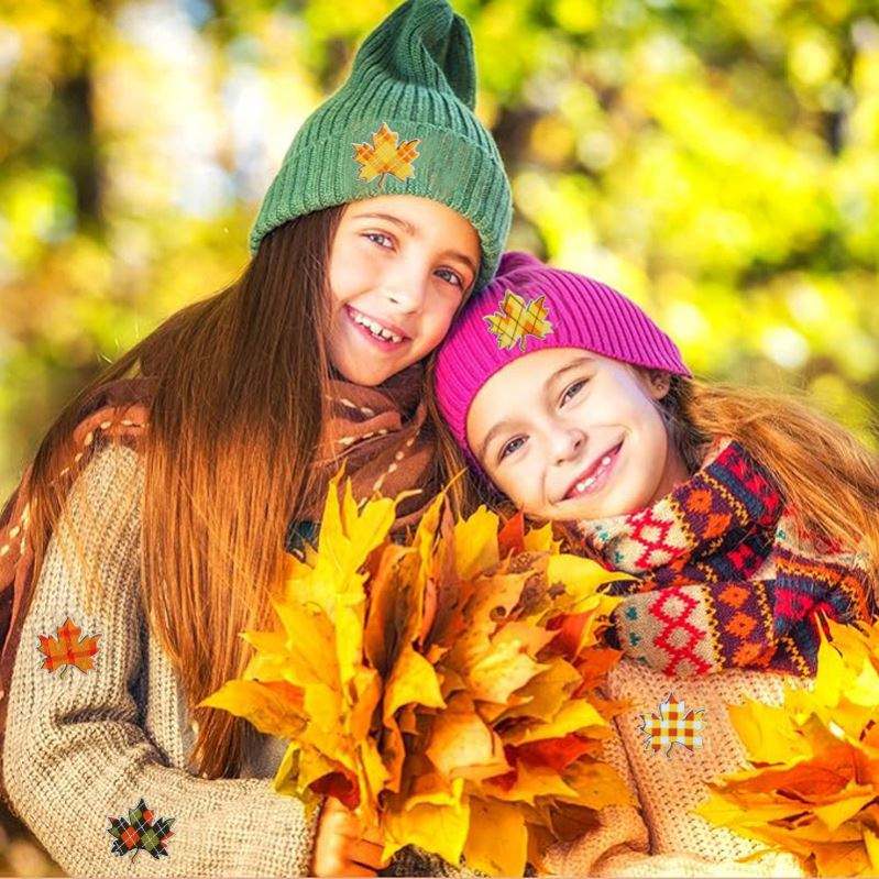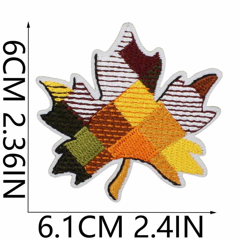 ของตกแต่งธีมฤดูใบไม้ร่วง ลายปักใบเมเปิ้ล แผ่นปะรีดติดลายใบเมเปิ้ล